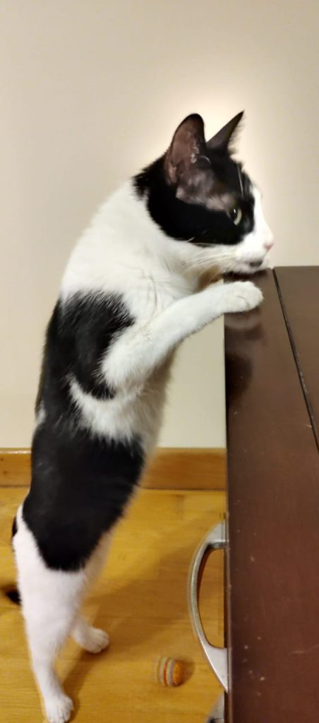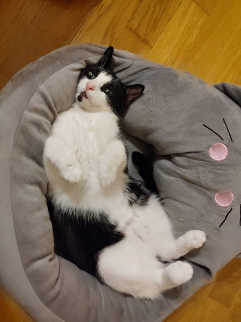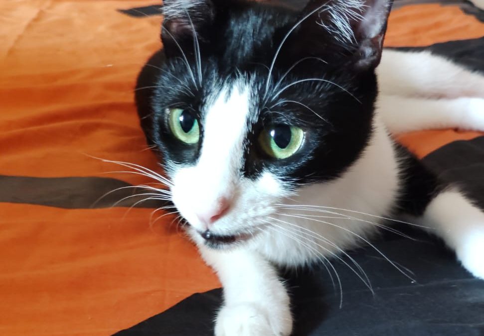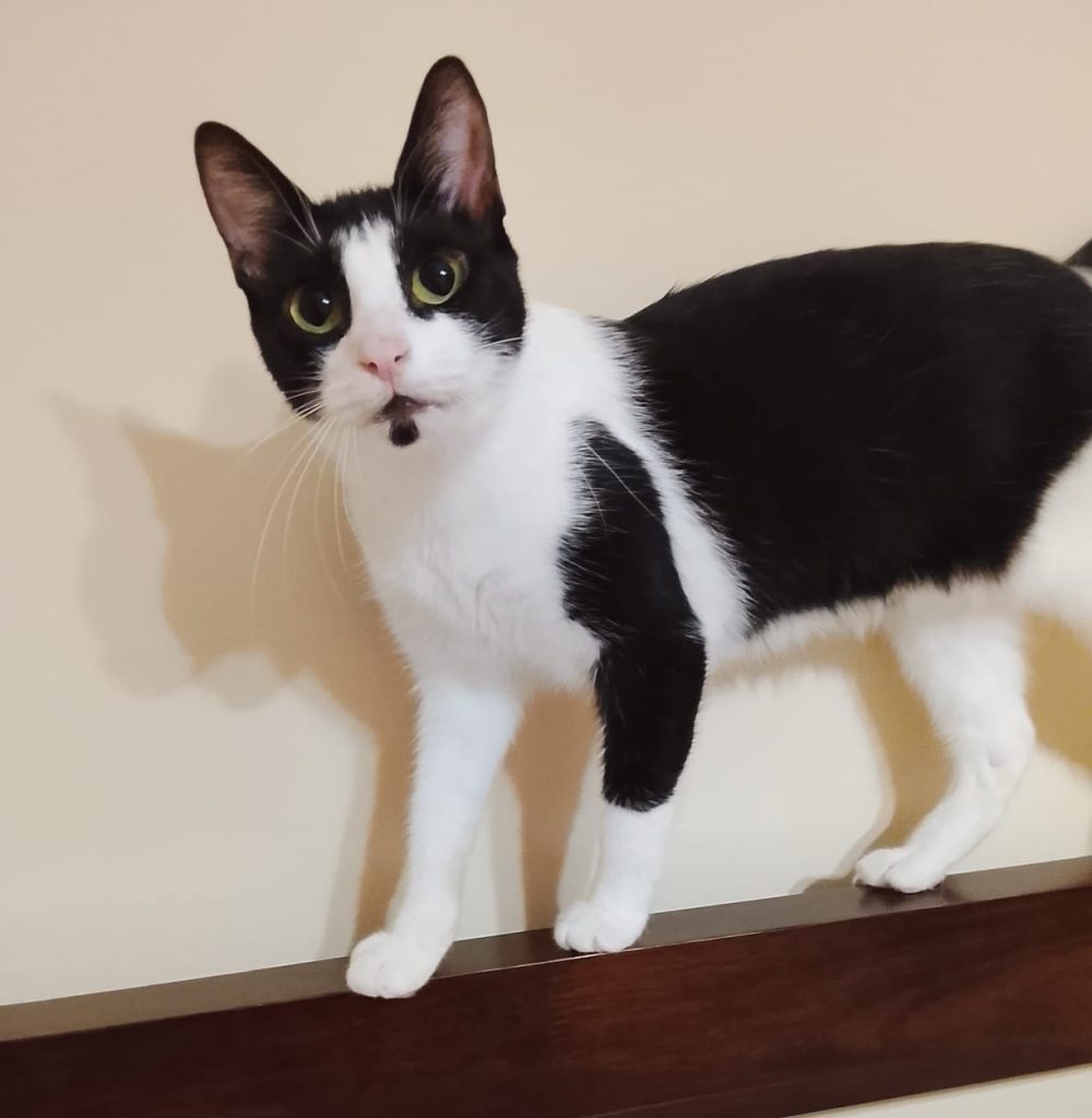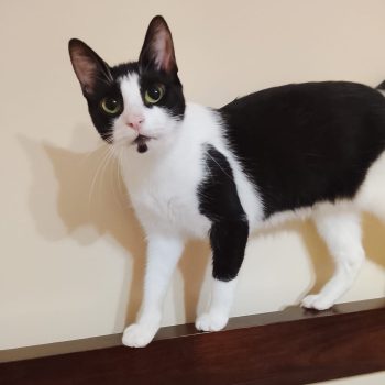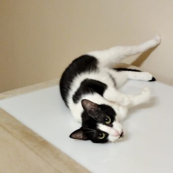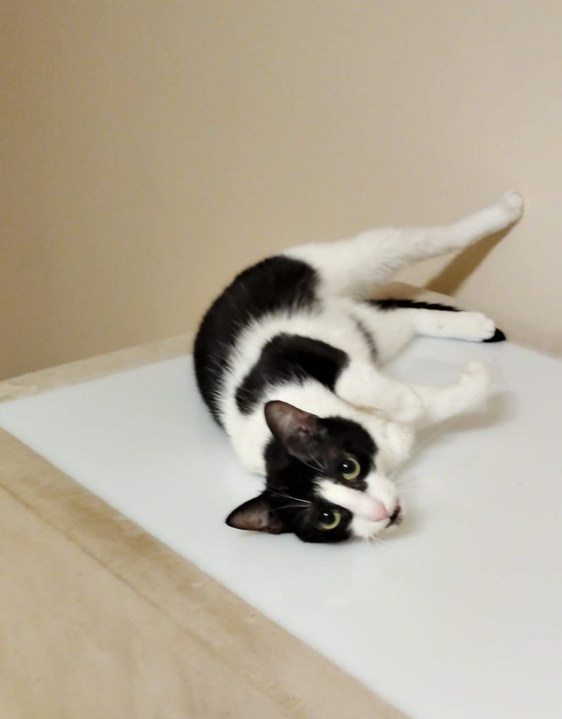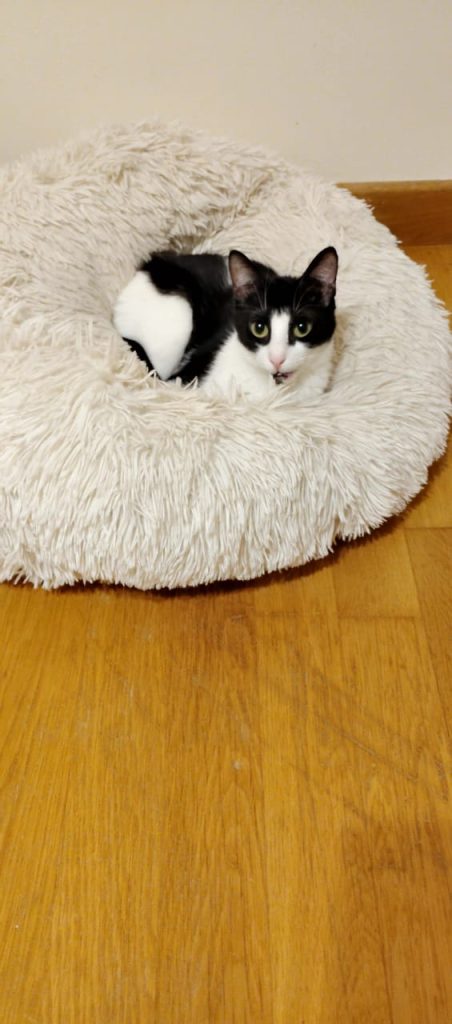 She was rescued as a baby from a busy main road. She is a little shy at first, but once she feels comfortable in her space, she loves cuddles, affection, and playtime.