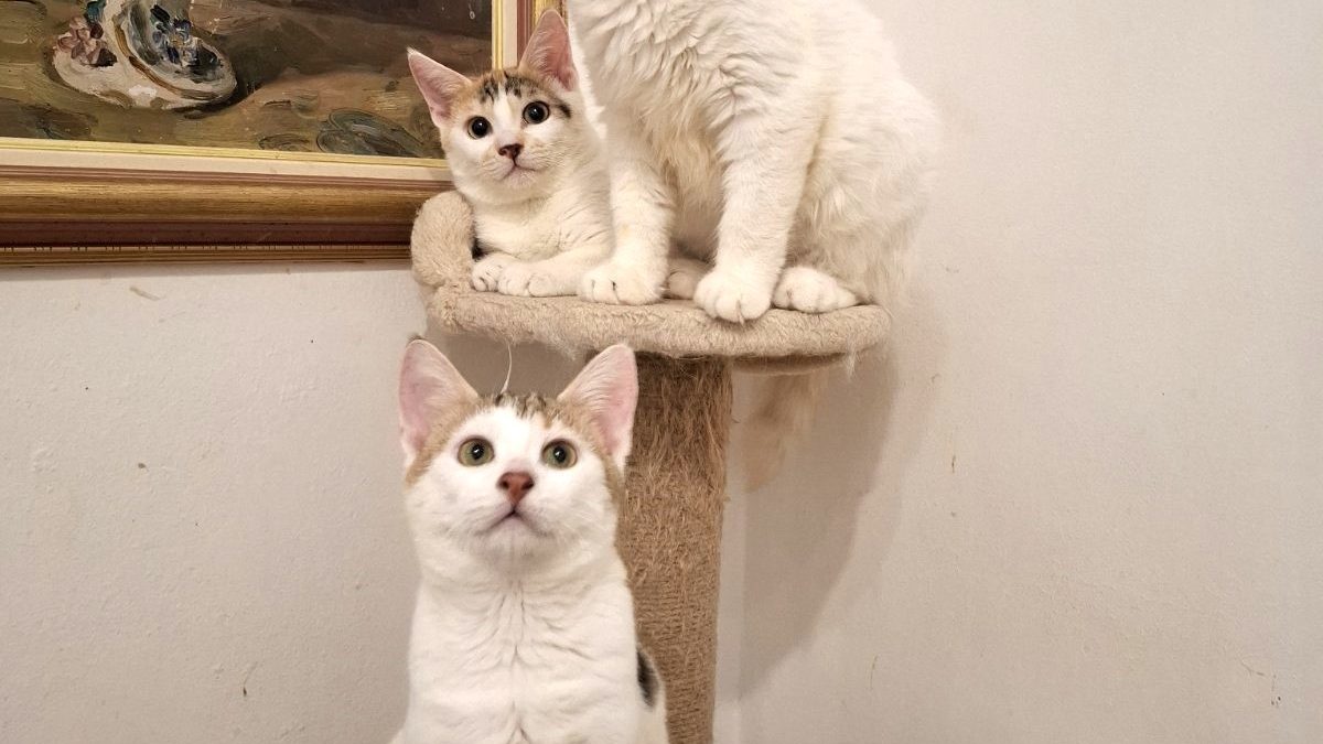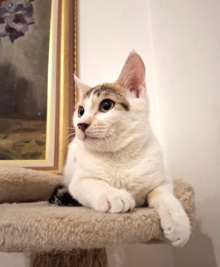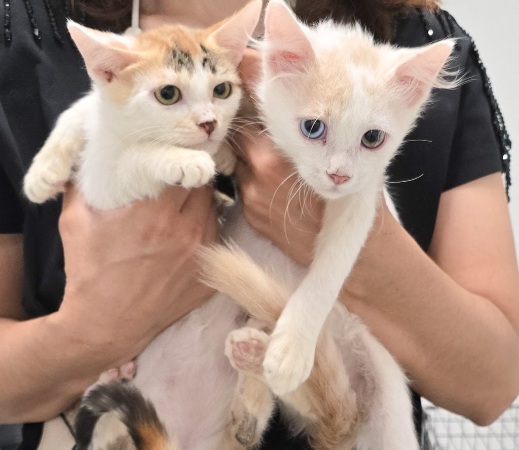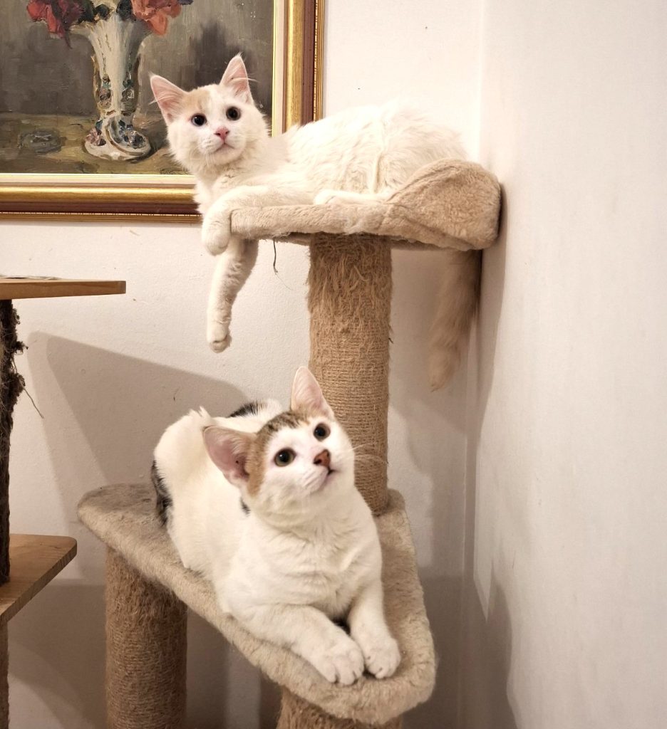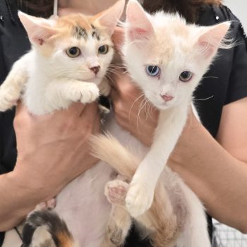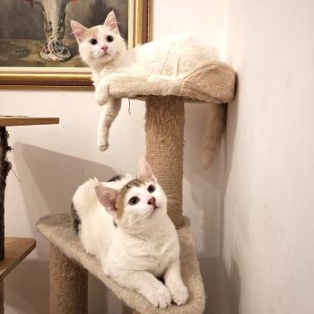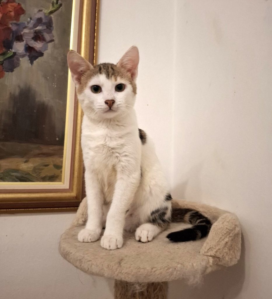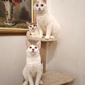October 9, 2025Noah, Hana and Yumi, are 3 siblings at around 8 months old, very beautiful and very affectionate. The 3 siblings were literally thrown onto the street along with their other 2 siblings, in a fainting state, malnourished and very weak.. we didn’t think they would make it.. to our great surprise and after the veterinarian’s enormous efforts, all 5 little ones made it, got stronger and got well. The 2 little boys found a home and now the other 3 little ones (1 little boy and 2 little girls), are also waiting for their forever home to be found. They are very good characters, playful and get along well with the other cats in their foster home.