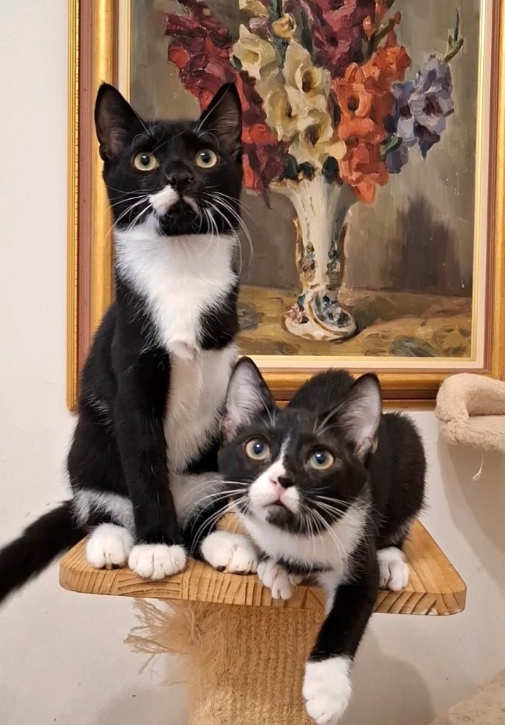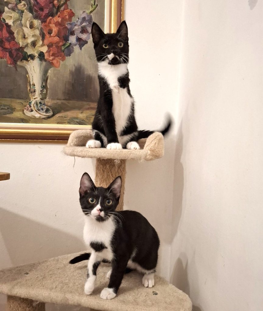 October 9, 2025Ria and Sirius are 2 kittens at around 5 months old, very tender and very playful. They were found under different circumstances, both very difficult. Ria was rescued as a newborn and grew up in our arms with a bottle. From the beginning, she showed us her strong personality since she had a preference for a specific flavor of milk! Sirius faced the pain from a very young age.. At just 1 month old, his front leg was amputated so that we could save him from sepsis.. he was tiny but a very big fighter and he made it. Now he runs and plays without any problems and he will become a beautiful big cat! We are looking for a home for our little ones, so that from now on they will neither be in pain nor afraid again.