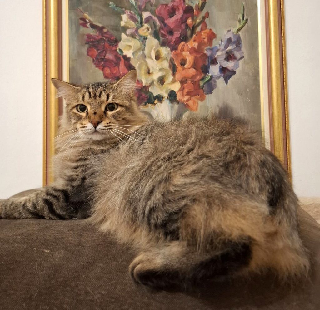 November 3, 2025Toby is a beautiful fluffy tabby male cat at around 2 years old. Toby was abandoned at a volunteer’s workplace. He was desperately looking for someone to pet him and hug him. The volunteer would leave the place and the other people in the area were kicking him to go away. Toby came with us and had to be hospitalized. We were very surprised to discover that his tail was in advanced sepsis and so unfortunately his beautiful fluffy tail, had to be amputated to save his life. He is now well, safe and enjoying the caresses of his temporary mom and the other cats in his foster home. He is very friendly, sociable and incredibly cuddly. We are looking for a home for sweet Toby, so that he will never be in danger again